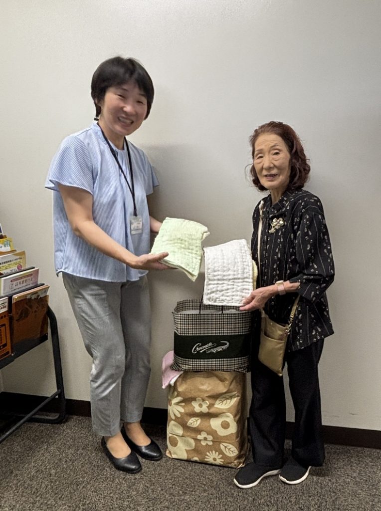 ☆寄贈品: | 使用済切手=3.2㎏、テレカ=12枚、インクカートリッジ=5袋、雑巾=280枚、紙パック=段ボール2」 |